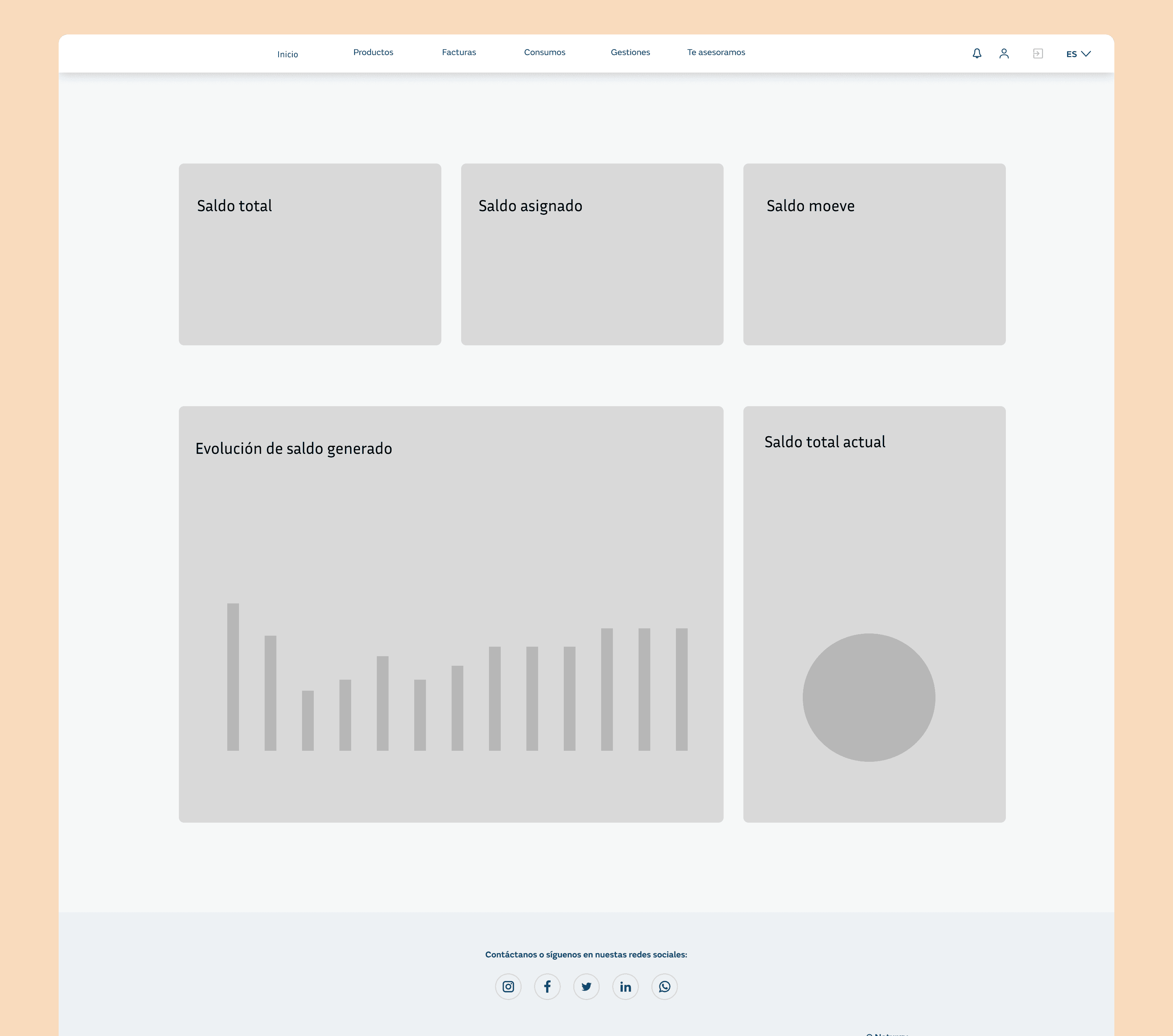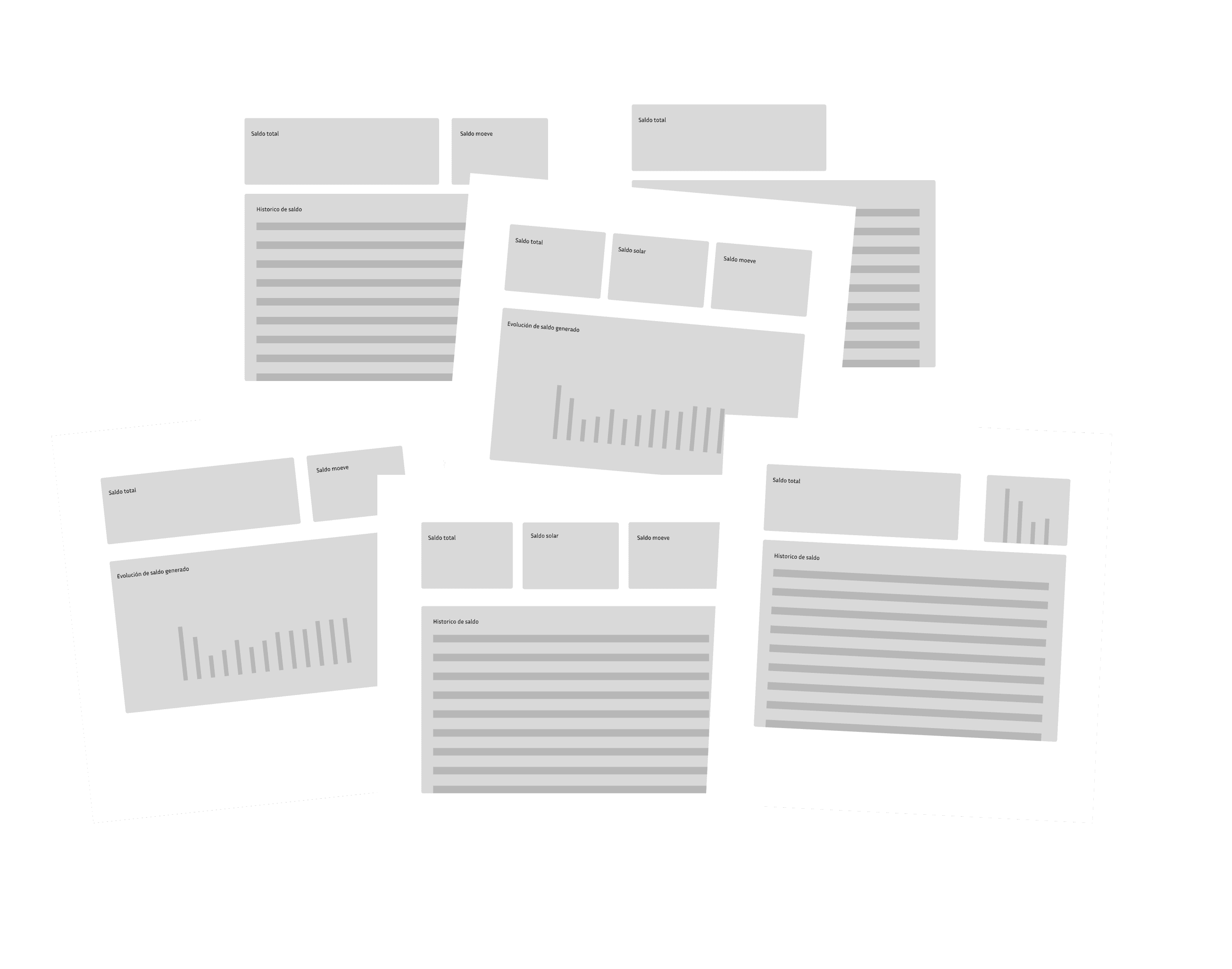 Wireframe de baja fidelidad de la nueva interfaz en la que se integran diferentes saldos.