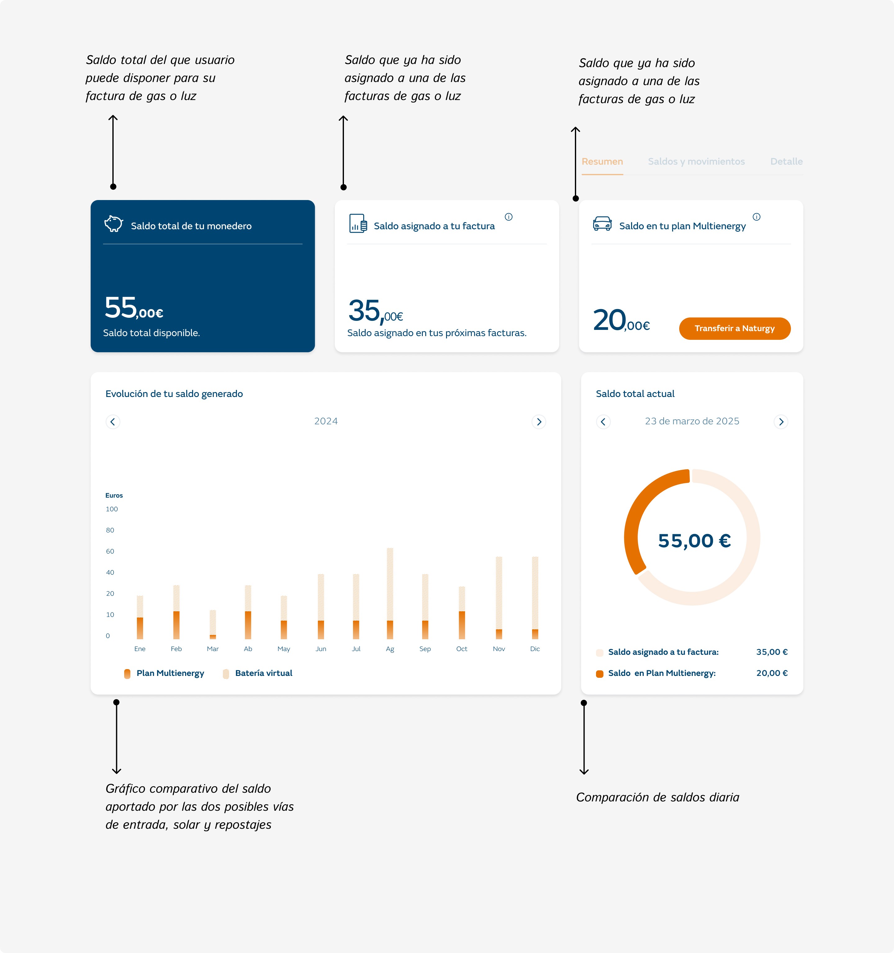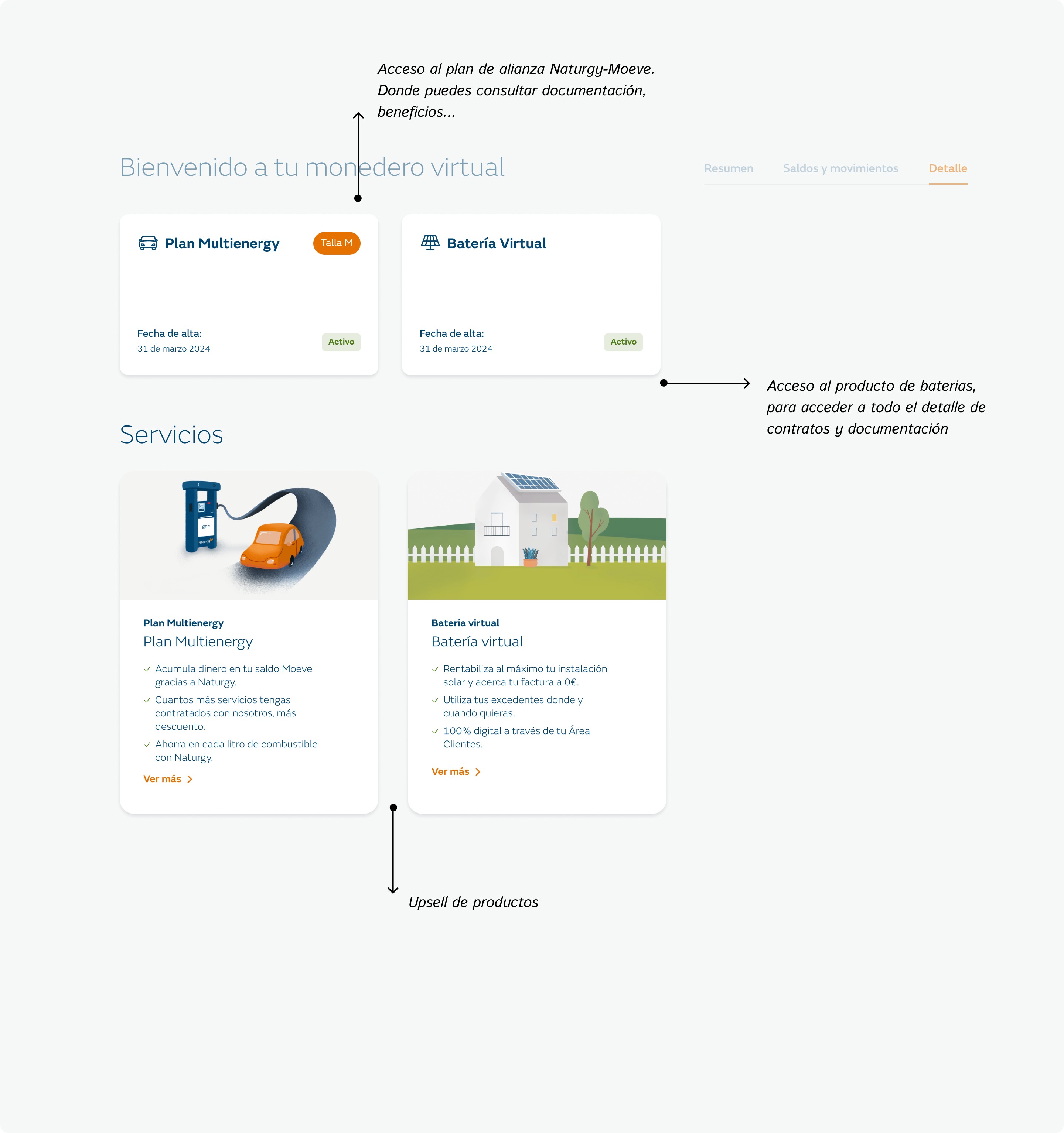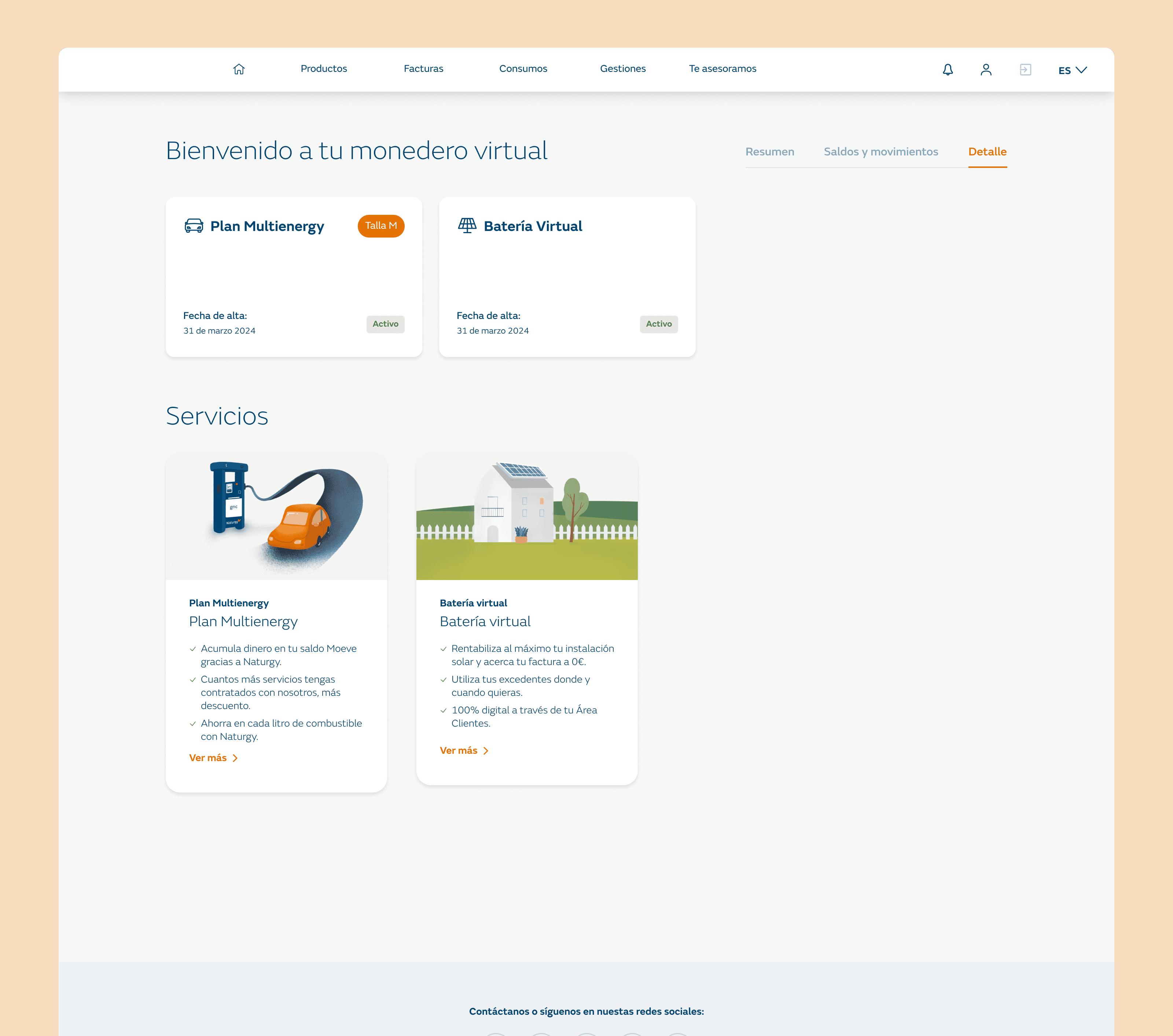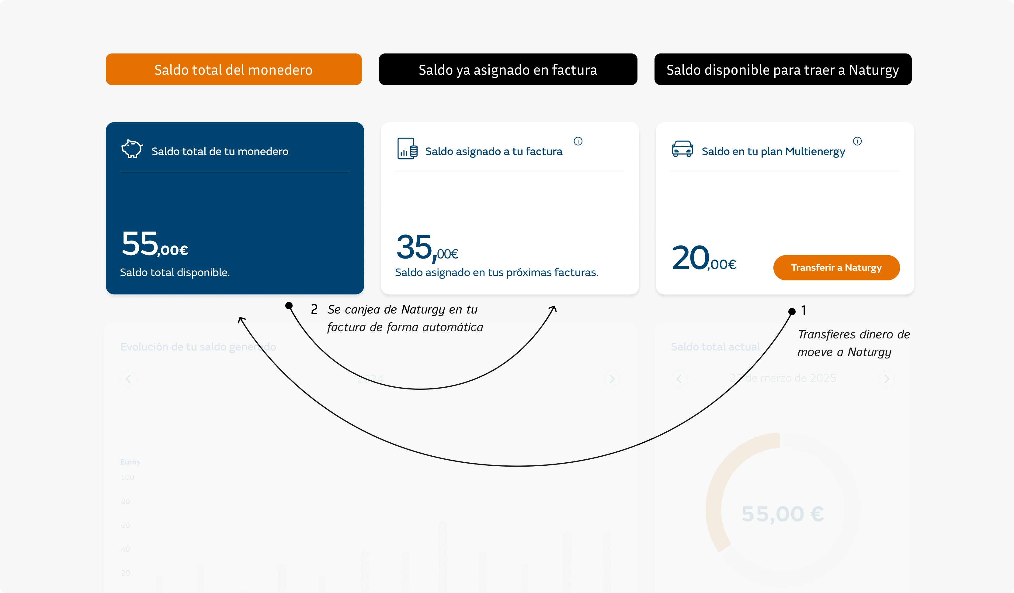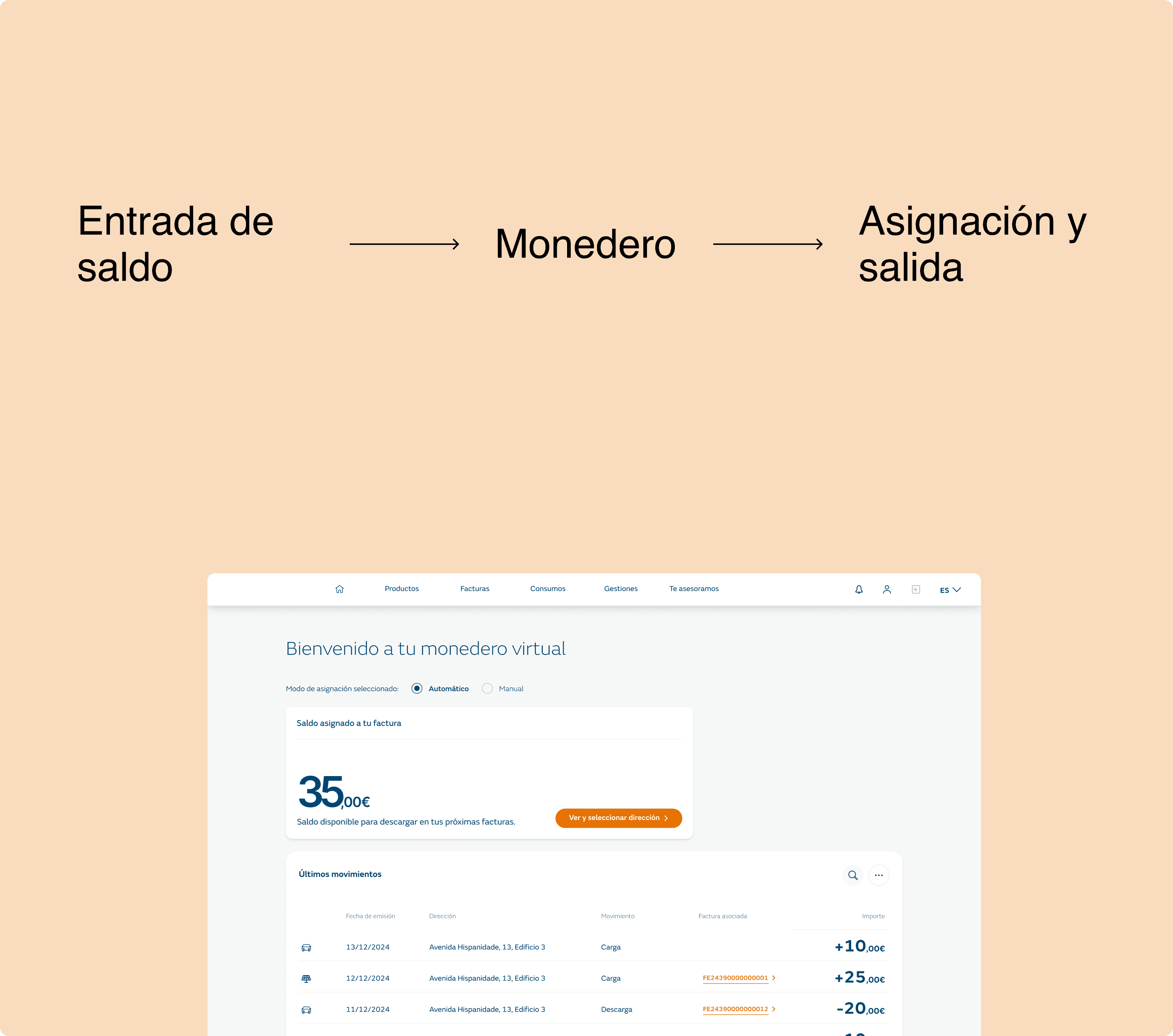 El Monedero Virtual es una de las funcionalidades clave dentro del ecosistema digital de Naturgy. Permite a los clientes acumular saldo generado por diferentes productos de la compañía y canjearlo directamente en sus facturas de luz, creando un incentivo tangible para la fidelización.
